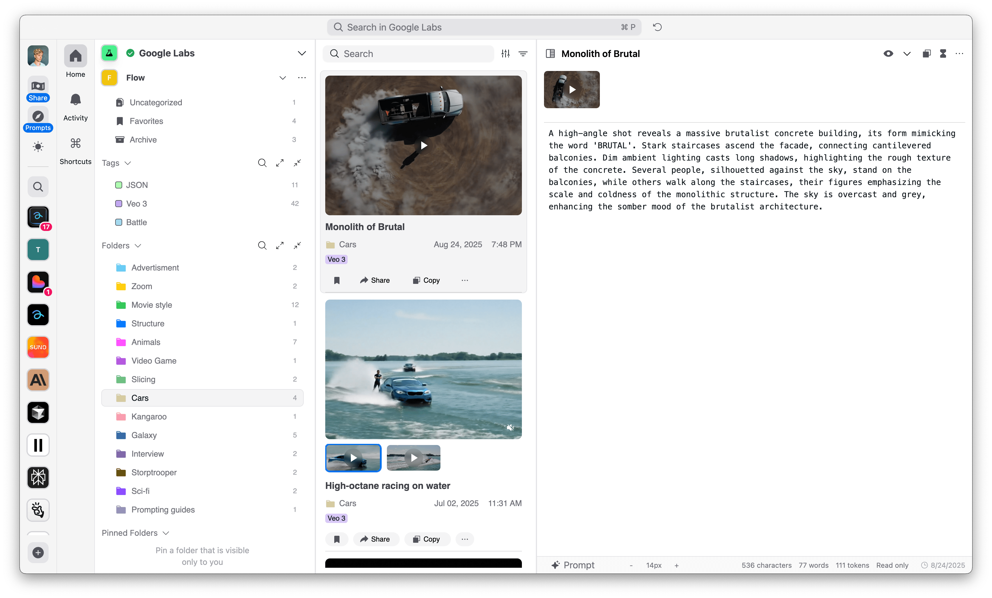 All-in-one storage – No need for scattered Google Docs text prompts and Google Drive audio/video files